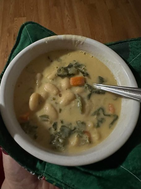 In a large pot or Dutch oven, add avocado oil and warm on medium heat. Add celery and carrots, and saute for about five minutes. Add the onion, and saute until the onion begins to turn translucent. Add garlic and seasonings and sauté for one minute more, stirring constantly to ensure veggies are covered in seasonings. Add vegetable broth and stir to distribute spices. Add beans and kale, turn heat to high, and bring to a boil. Reduce heat, cover, and simmer for 30 minutes.