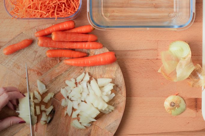 - 2 carrots, peeled and diced (or you can use about 1/2C of matchstick carrots)